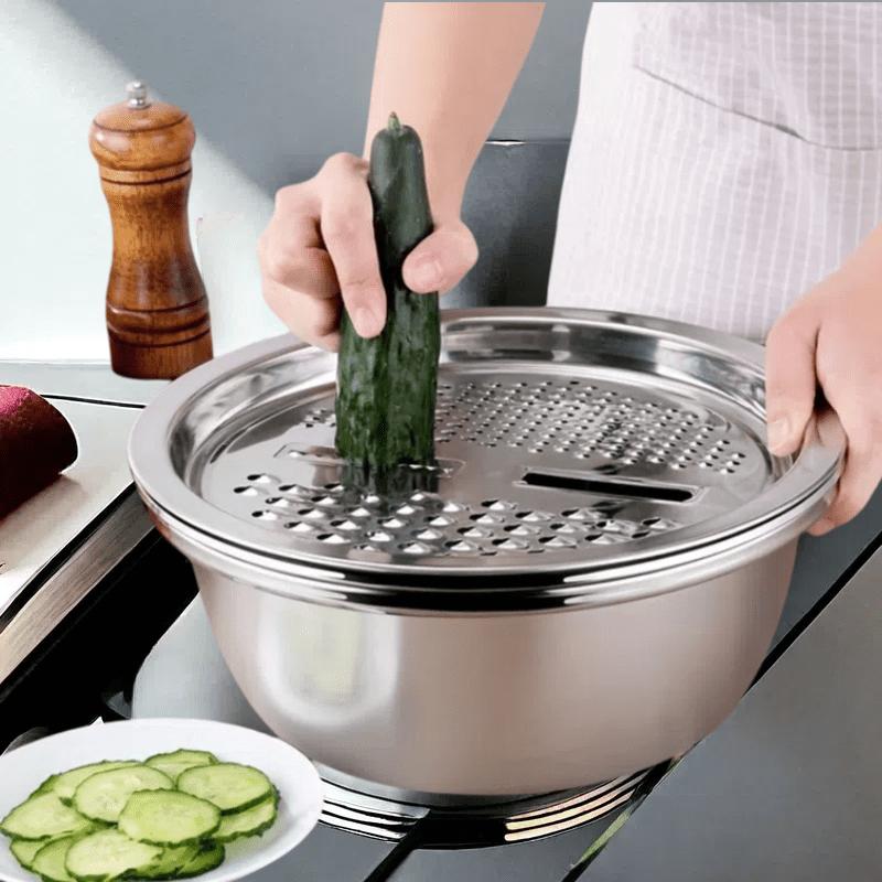 Крышки для кухонных мисок из нержавеющей стали, состоящие из 3 частей, многофункциональная миска для смешивания, строгальный станок, съемная многослойная нарезка