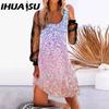 IHUASU Женская мода весна осень однотонный принт длинный рукав U-образный вырез высокая талия повседневные платья — купить товар онлайн с бесплатной доставкой по всему миру!