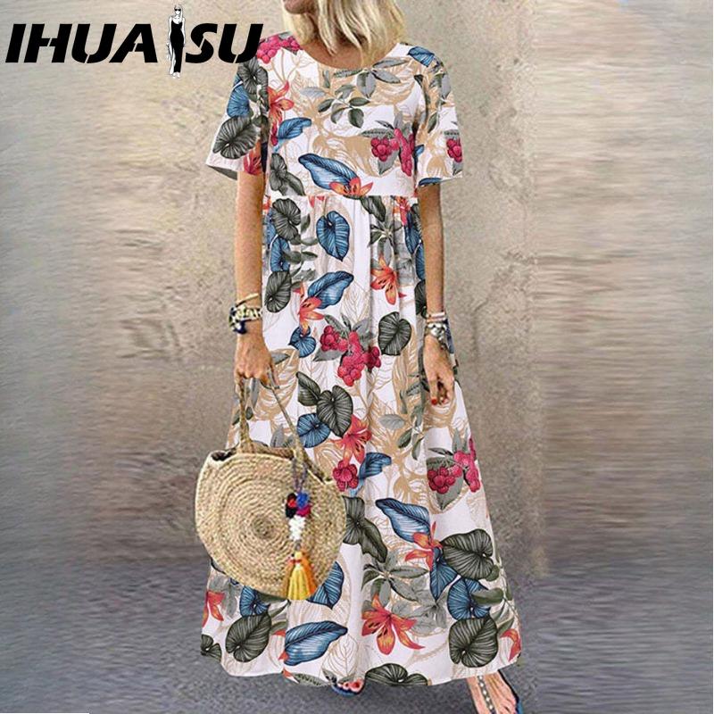 IHUASU Женская мода Лето Весна Однотонный принт Короткий рукав Круглый вырез Высокая талия Повседневные платья — купить товар онлайн с бесплатной доставкой по всему миру!