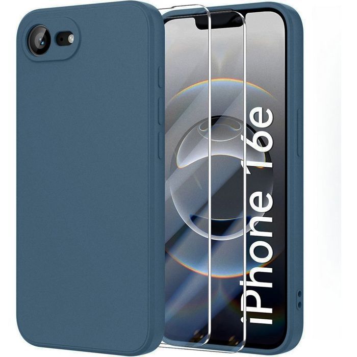 Coque de protection pour iPhone 16e - BOOLING - Ultra Slim Antichoc - Silicone Bleu Marine - 2 Verres Trempés