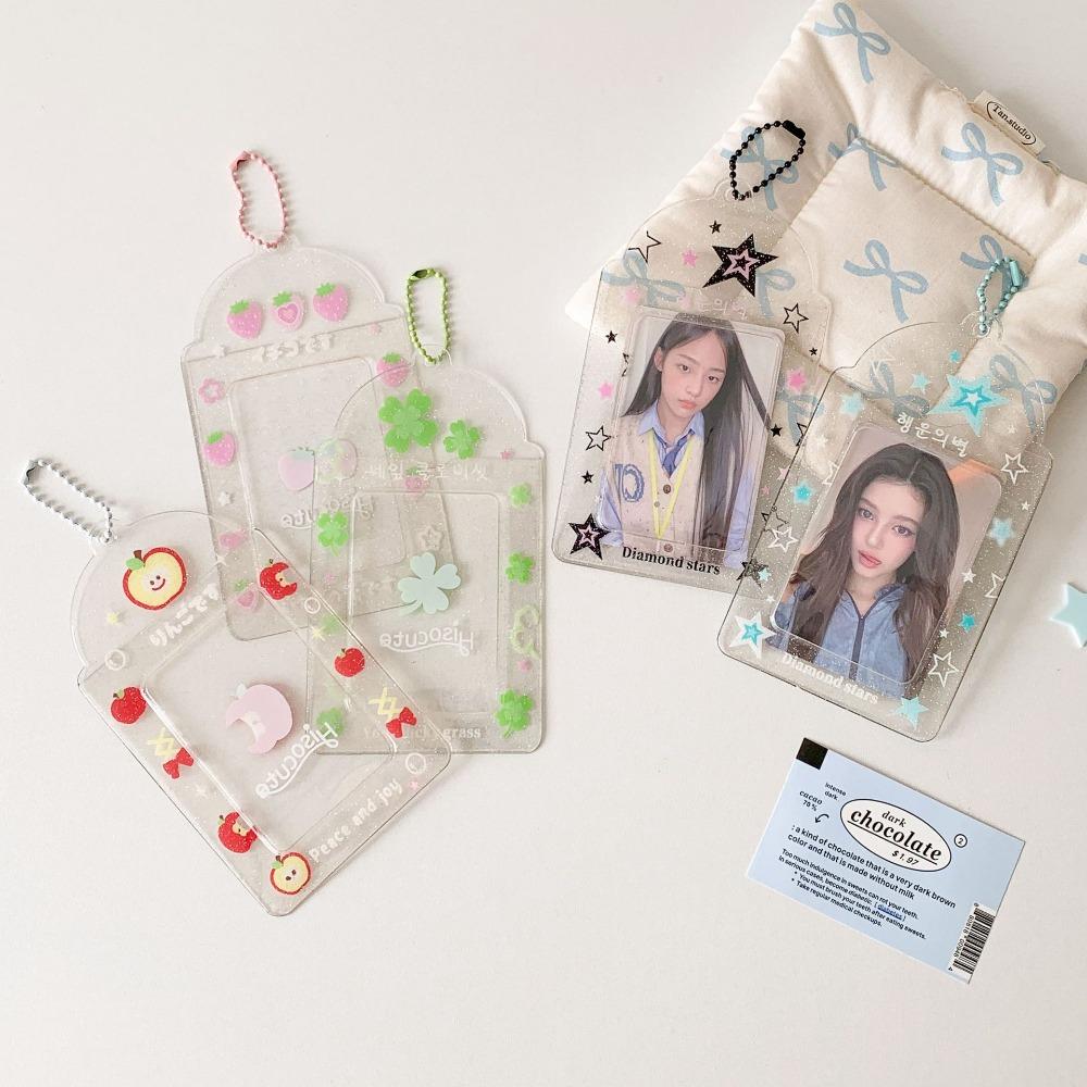 Keychain Pendant Korean Photocard Holder Star Strawberry Idol Card Display Protector Card Decor