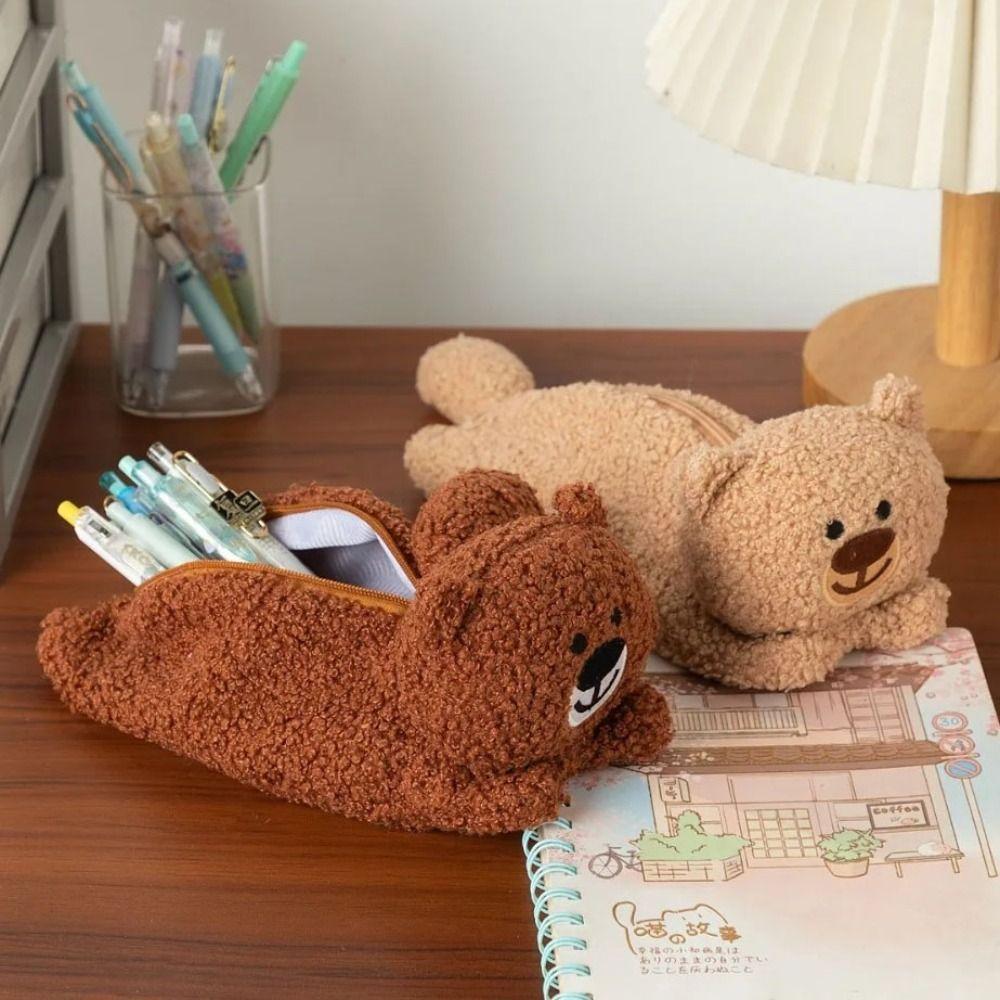 Милый дизайн Медведь Плюшевый пенал Большая вместимость Канцелярские принадлежности Сумка для хранения Канцелярские принадлежности