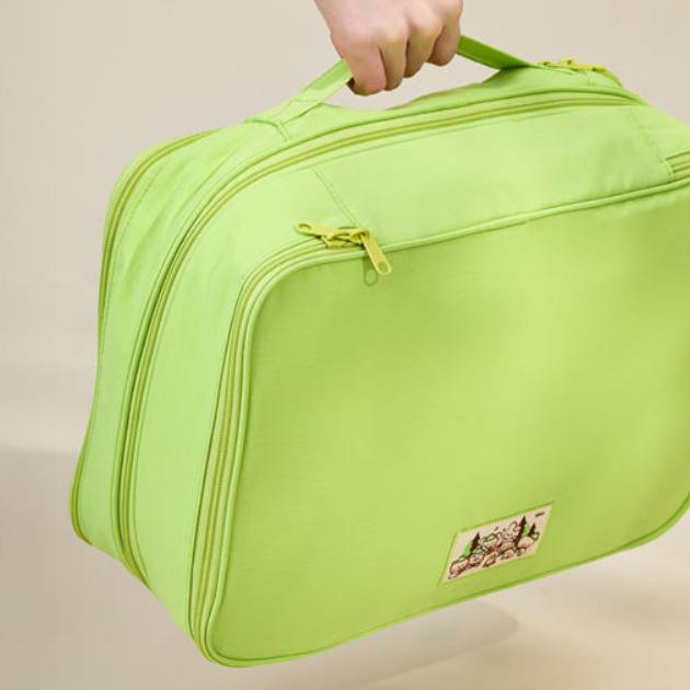 Персонаж BT21 Mini Scout выделяется, и он разработан со структурой, которая позволяет аккуратно организовать различные предметы первой необходимости для путешествий, такие как нижнее белье, носки, косметика и зарядные устройства.