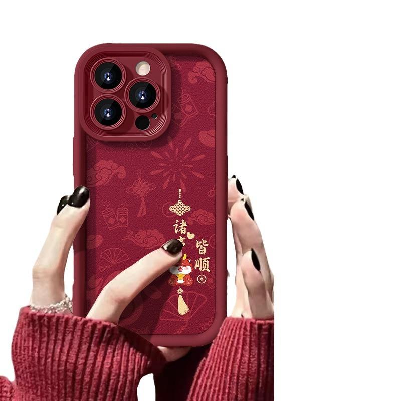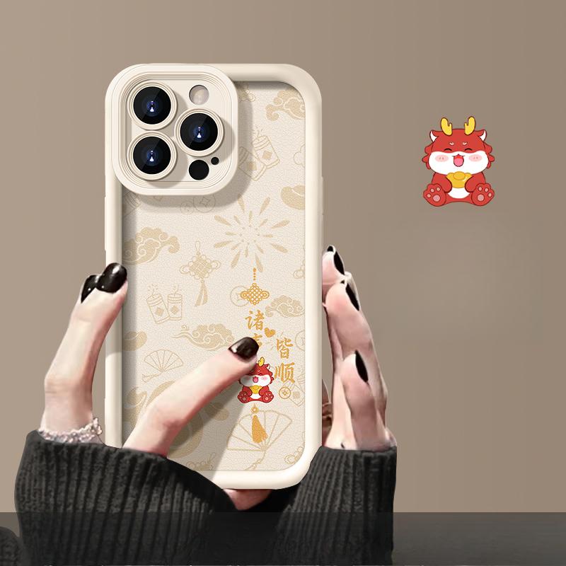 Подходит для Apple 15 Чехол для мобильного телефона Iphone14/13promax Все идет хорошо в год Дракона 12/11 Силиконовая кожа ягненка