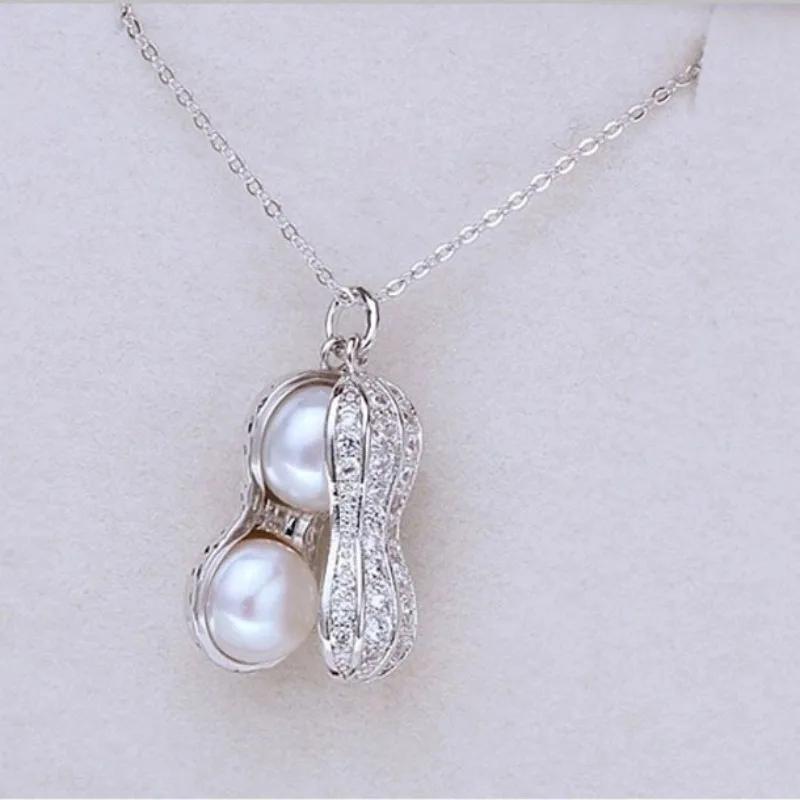 Модное стильное ожерелье с подвеской в виде арахиса, ювелирное изделие из прозрачного жемчуга для женщин(цвет: Золото, Серебро, Розовое золото)