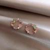 Корейские круглые серьги-гвоздики с розовым и зеленым кристаллом для женщин, классический дизайн, сладкие цветочные украшения в форме круга, свадебная мода Brincos