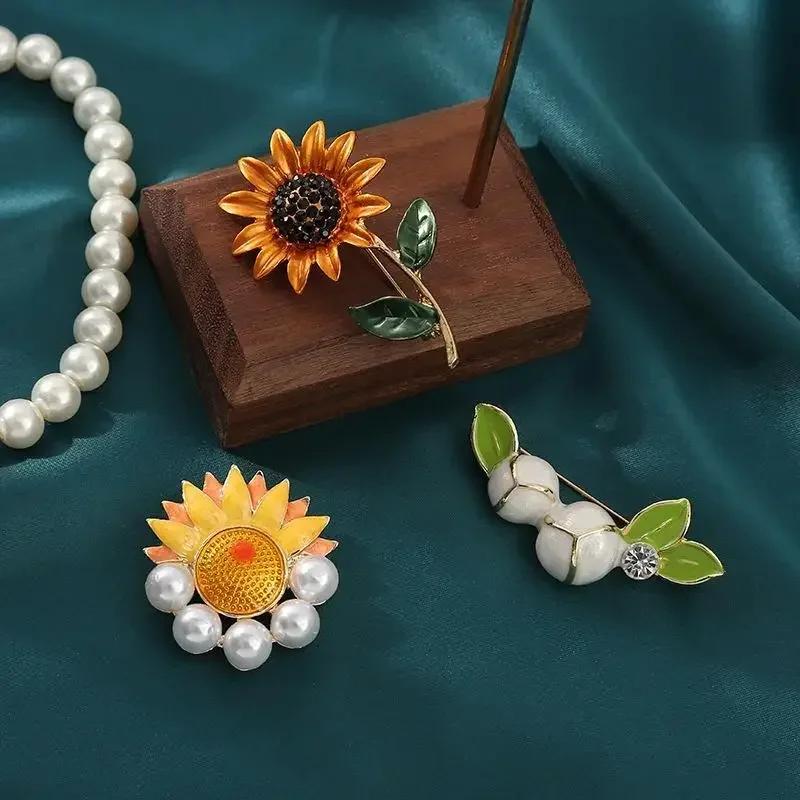 Подсолнух Хризантема Магнолия Эмаль Брошь Нежная Дамская Страза Нагрудный Знак Одежда Аксессуары Подарочные Украшения Подарок Девочке