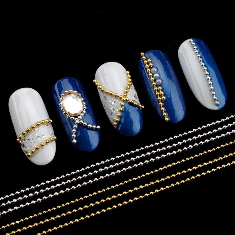 100см 3D Золотые Ногти Металлическая Цепь Бусина Микро Типсы DIY Стальной Шарик Панк Стиль Украшение для Нейл-Арта Аксессуары для Красоты Аксессуар для Ногтей