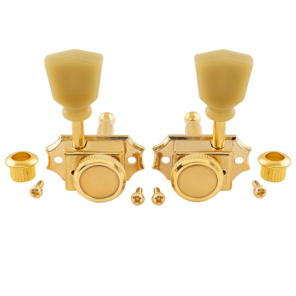 Musiclily Pro Vintage Guitar Locking Tuners for LP Les Paul Electric Gold Cream Button 3L+3R Guitar/Acoustic Guitar,