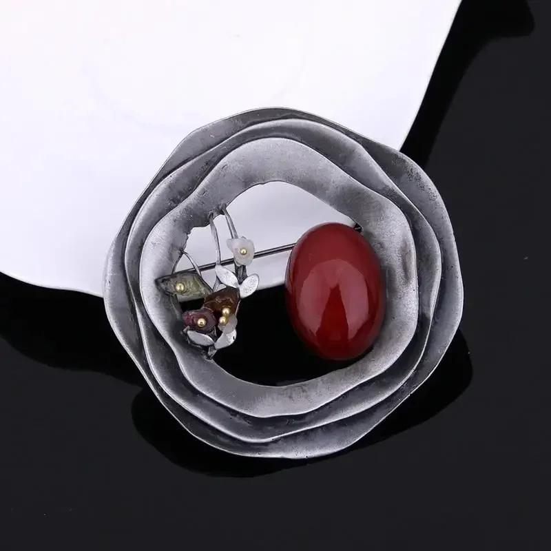 Женская мода Винтажные Большие Круглые Броши-цветы из цинкового сплава и смолы Изысканные Полые Броши-булавки Растительные украшения Подарки Аксессуары