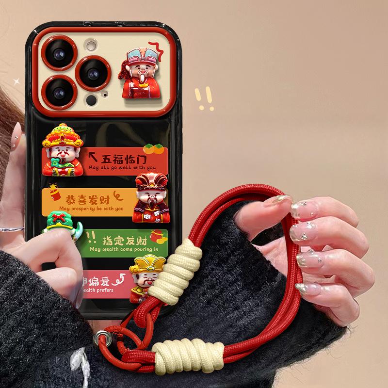 Подходит для Apple 15 Чехол для мобильного телефона IPhone 13/14promax Wufu Linmen Doll Lanyard 12 Flip Mirror 7