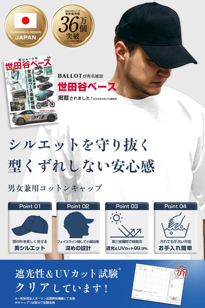 Кепка для мужчин и бейсболка Deep Large UV Cotton [Ballot] женская, однотонная, унисекс, тип, размер, защита, кепка, 100% (Л, Черный)