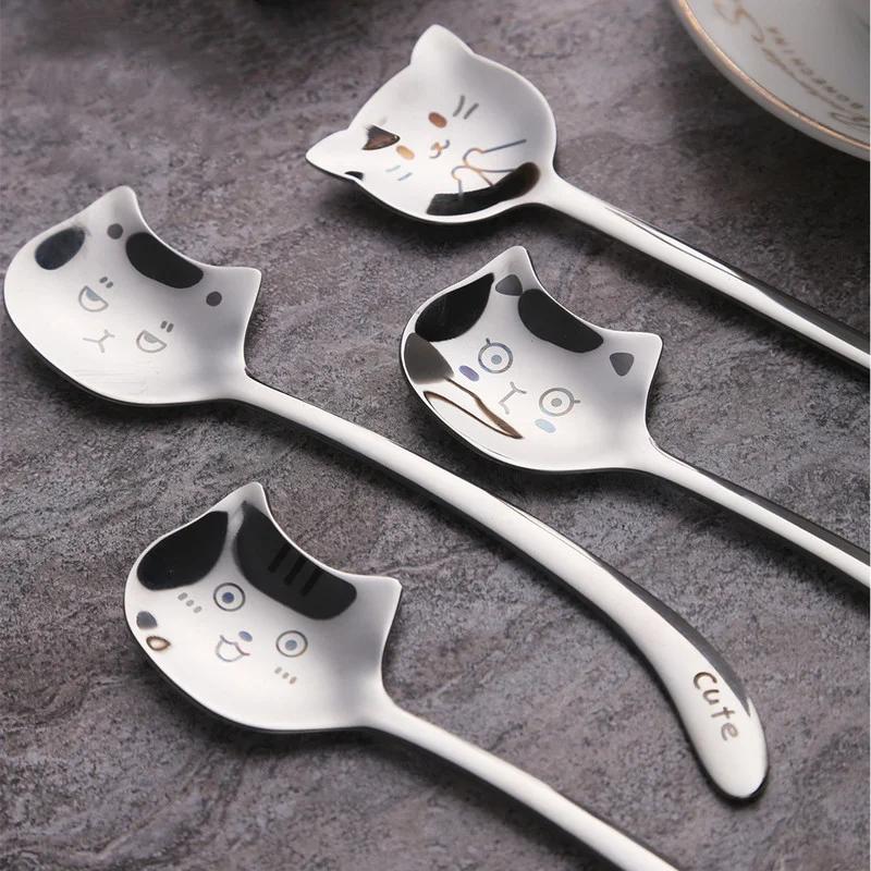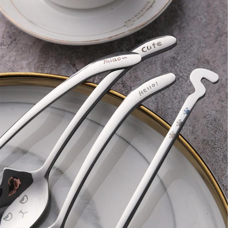 Креативная длиннохвостая кофейная ложка в виде кота, чайная ложка для кофе, длинная ручка, подарок на день рождения, столовые приборы из нержавеющей стали 304