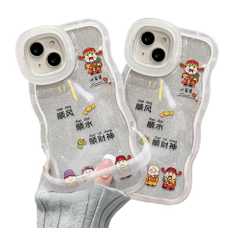 Подходит для Apple 15 Чехол для мобильного телефона iPhone 13 Five God of Wealth 14 Волнистая сторона Невидимый двойной кронштейн 12 Прозрачный Flash Powder XR