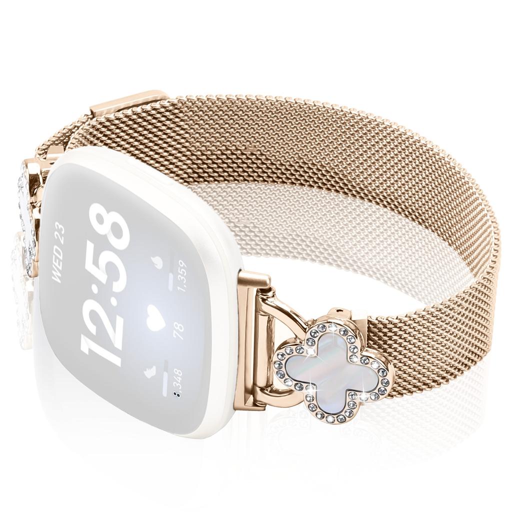 Миланский ремешок для Fitbit Versa 3/Sense, гальванизированный ремешок для часов из нержавеющей стали с разъемом в виде клевера, размер: S