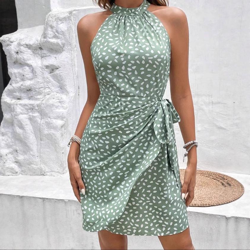 Женское летнее платье-бандаж без рукавов с воротником-стойкой и цветочным принтом