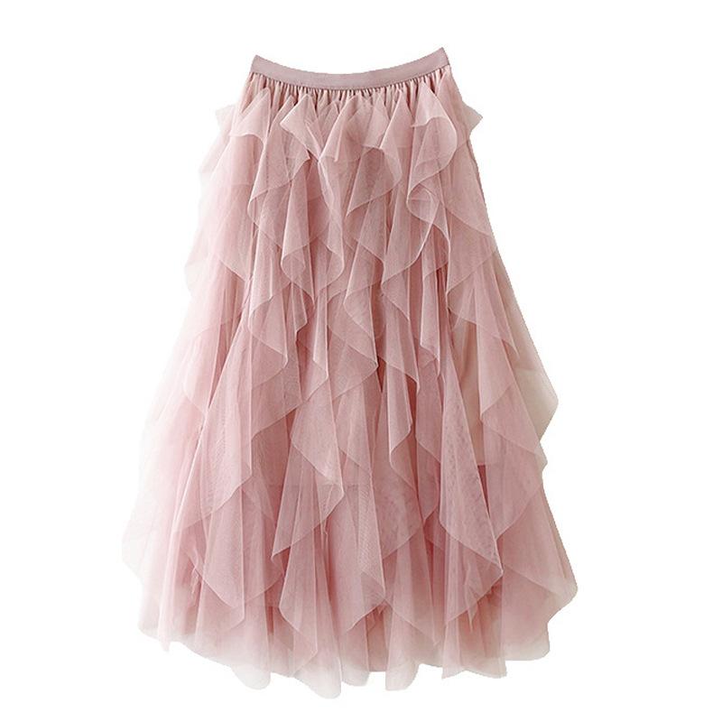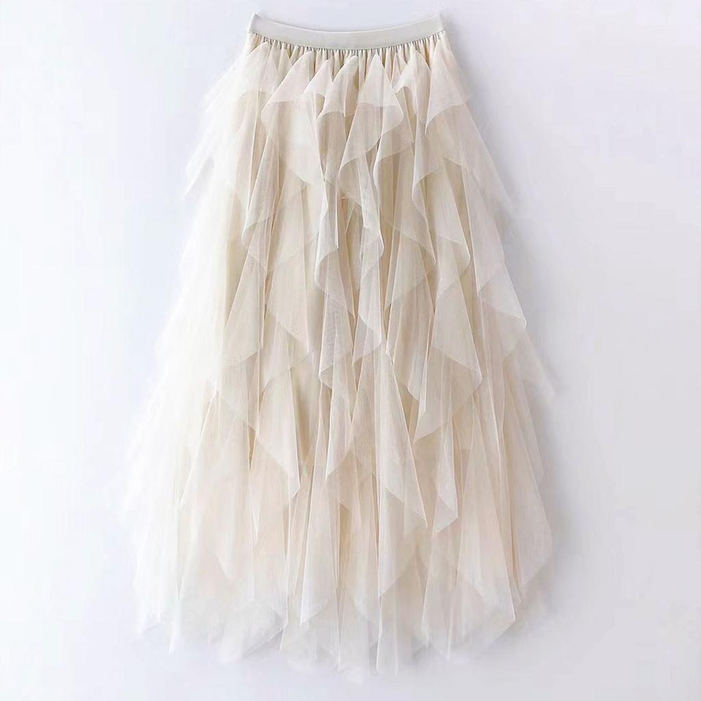 Юбка-трапеция с асимметричной завышенной талией, сетчатая юбка, весенняя новинка, юбка-бюстье, юбка-сари для женщин, пышная юбка
