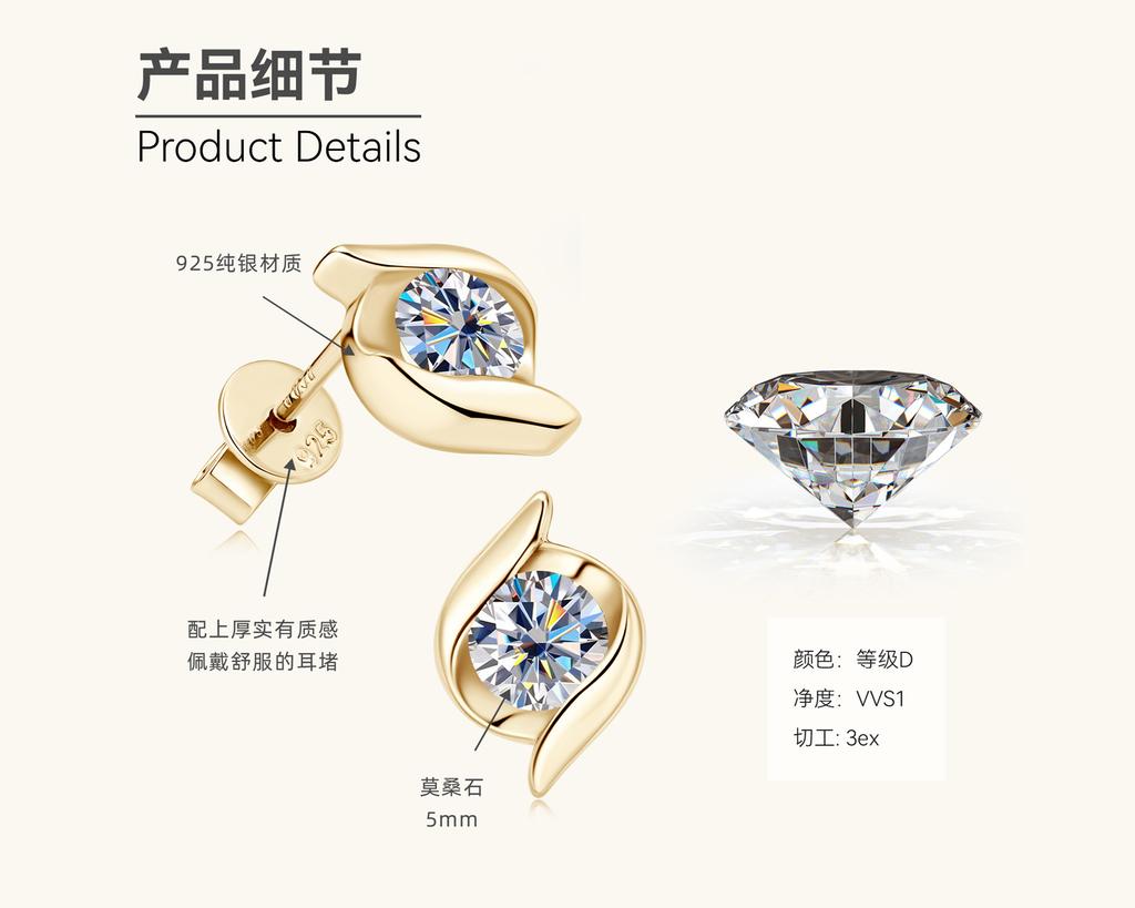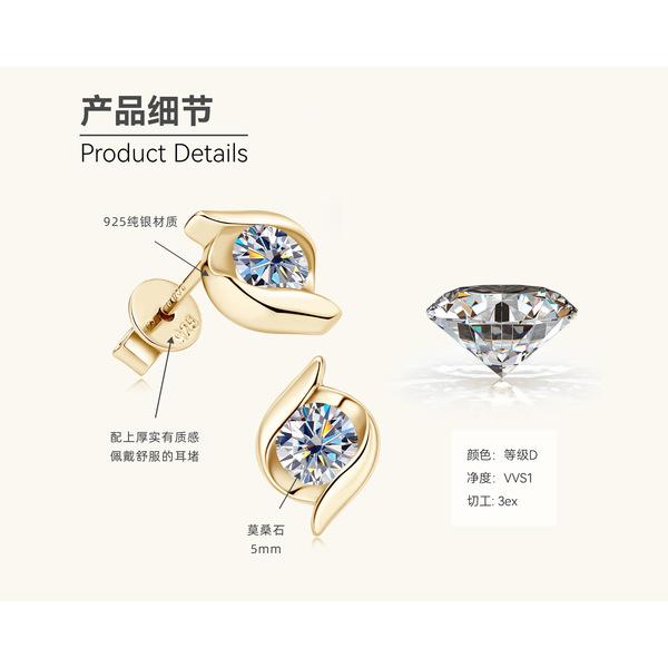 Silvere Glam Light Luxury And High-end Moissanite Stud Earrings, Niche Design, Lightning Model S925 Sterling Silver