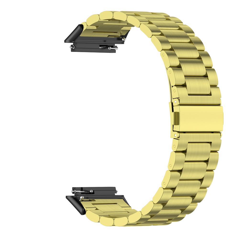 For Huawei Band 7 Stainless Steel Smart Watch Band Three Beads Replacement Strap with Folding Buckle