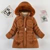 Зимнее хлопковое пальто на толстом флисе для девочек, модный стиль, средней длины, с приталенным дизайном