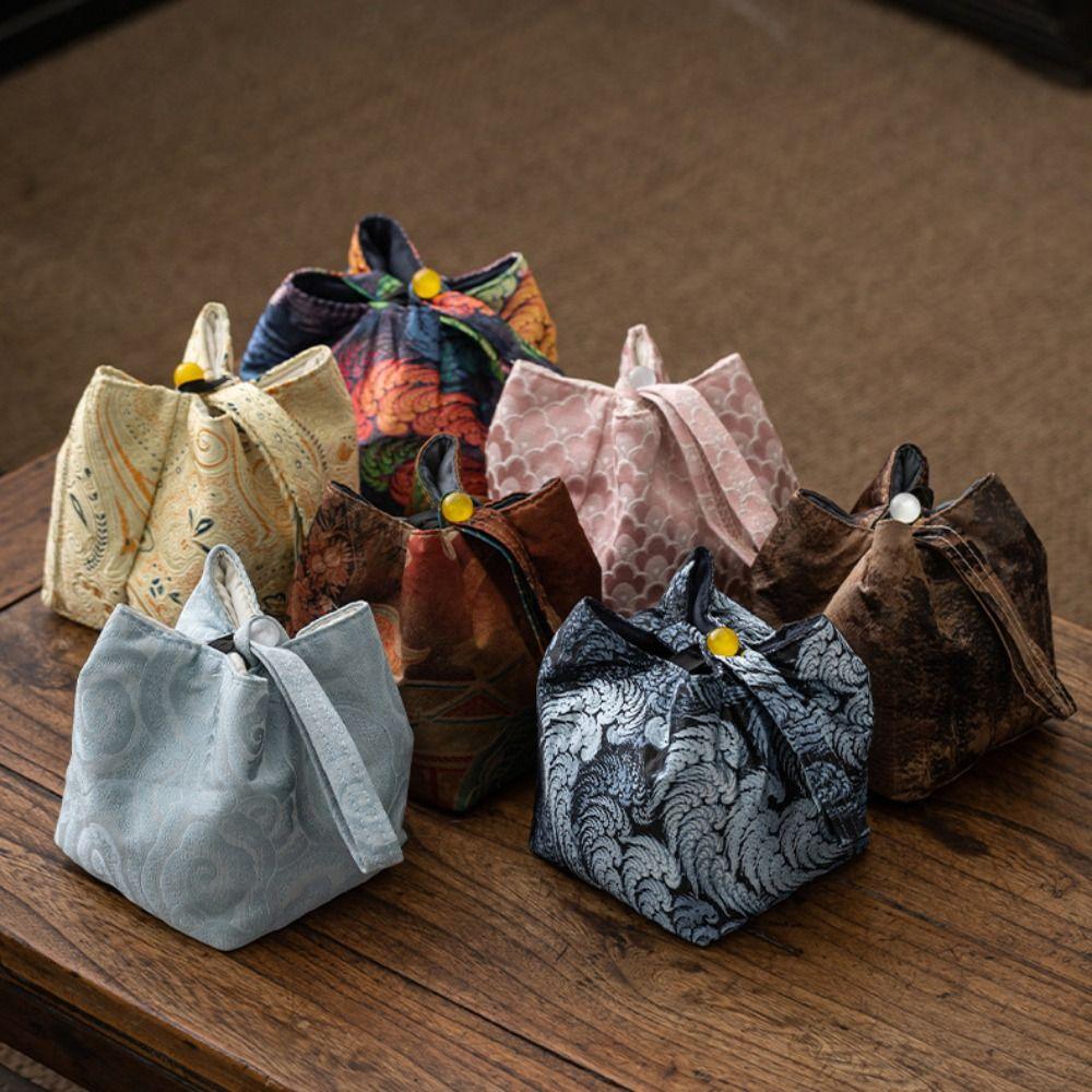 Сумка для хранения чайной посуды в китайском стиле, ударопрочная вышитая сумка в стиле ретро для небольших предметов, дорожная сумка