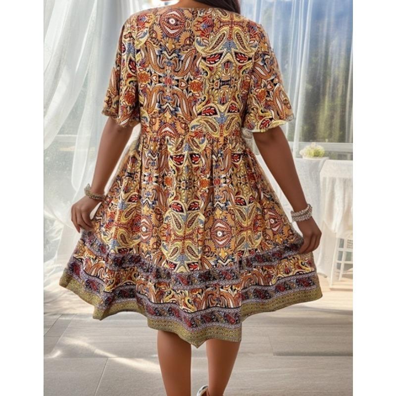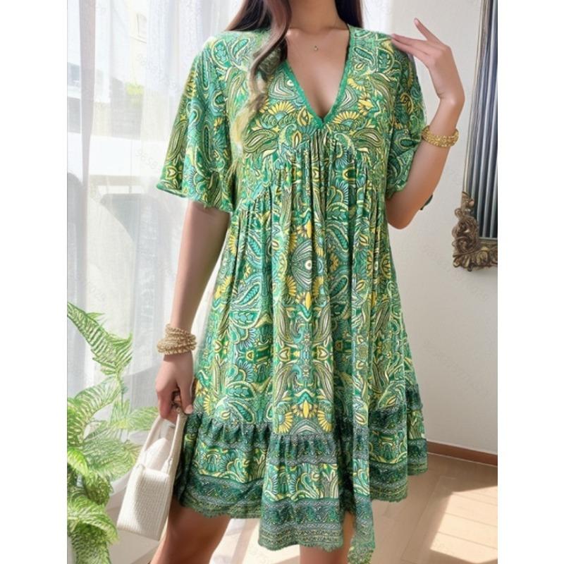 JKASHDK Женская мода лето-весна с цветочным узором и принтом с коротким рукавом и v-образным вырезом, свободная талия, повседневные платья