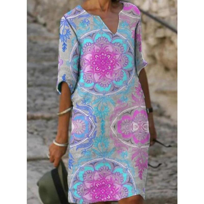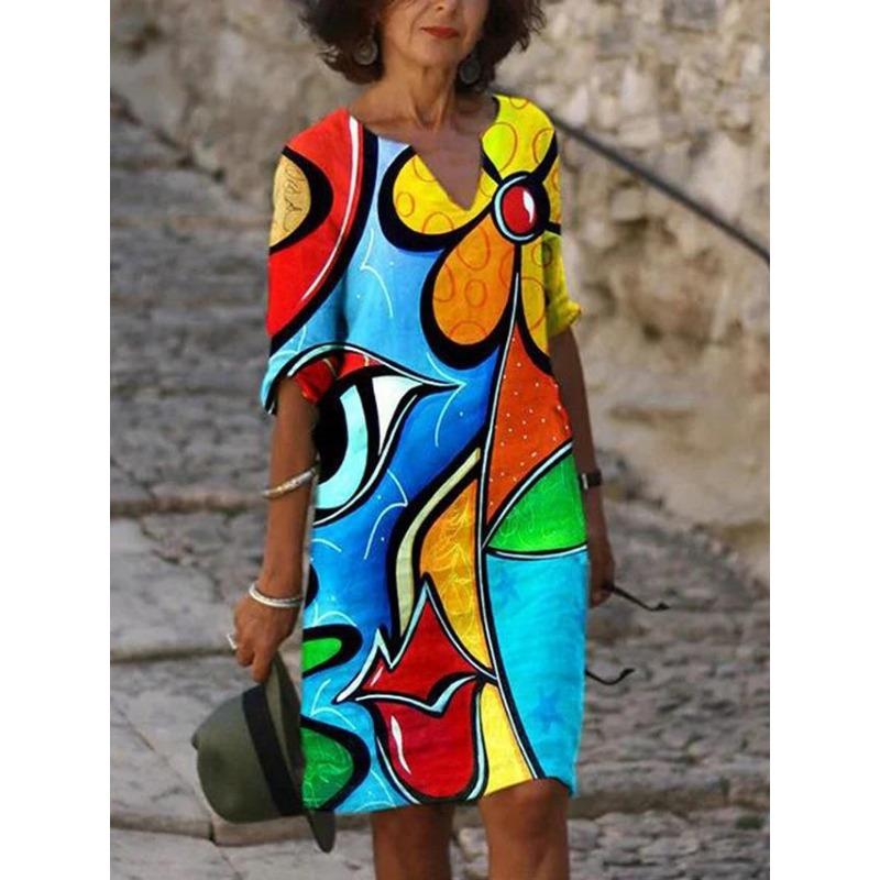 JKASHDK Женская мода лето весна цветочный узор принт рукава 1/2 V-образный вырез свободная талия повседневные платья