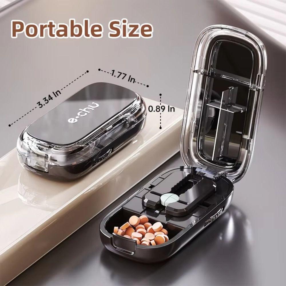 Dustproof Portable Pill Cutter Adjustable Daily Tablet Splitter 2 in 1 Pill Storage Box Travel