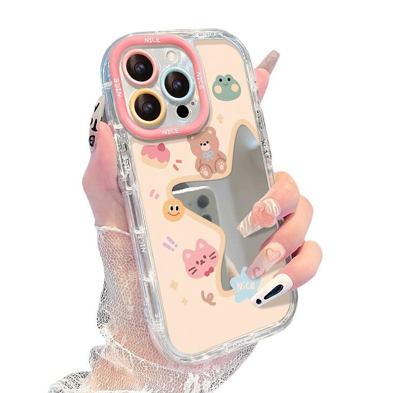 Подходит для чехла для мобильного телефона Apple 15 Iphone14 Милый мультяшный 13 Зеркальный Прозрачный Силиконовый Мягкий край 12/11