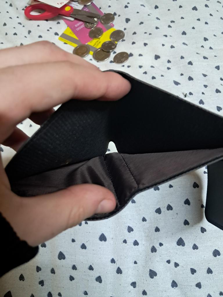 Ну в общем соответвует тому что заказала. Запах неприятный, пластика или китайская кожа. Впринципе свою функцию выполняет, не видела чтобы швы или кожа отойдёт после пару недель. Однако, есть ещё вопросы. 1. В предпологаемом месте для налички, так и должно быть? Такое чувство, будто там не хватает самого "кармана" а просто, ну, место. 2.Есть что-то вроде дыры, из которой может выпасть мелочь если её туда класть. Тут не сказала бы что прям есть место для мелочи, кроме вот этого кармашка мелкого. 3. Паспост с трудом влез в кармашек. В остальном, претензий у меня нет. Если привыкли часто таскать больше мелочи/ налички, к примеру для общественного транспорта, это не самый лучший вариант. А так, для карт и самого важного сойдёт.