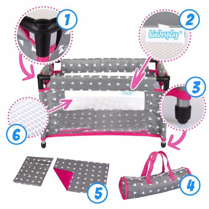 Kinderplay Lit de voyage pour poupées avec parc, sac et literie, jusqu’à 46 cm (KP0400S)