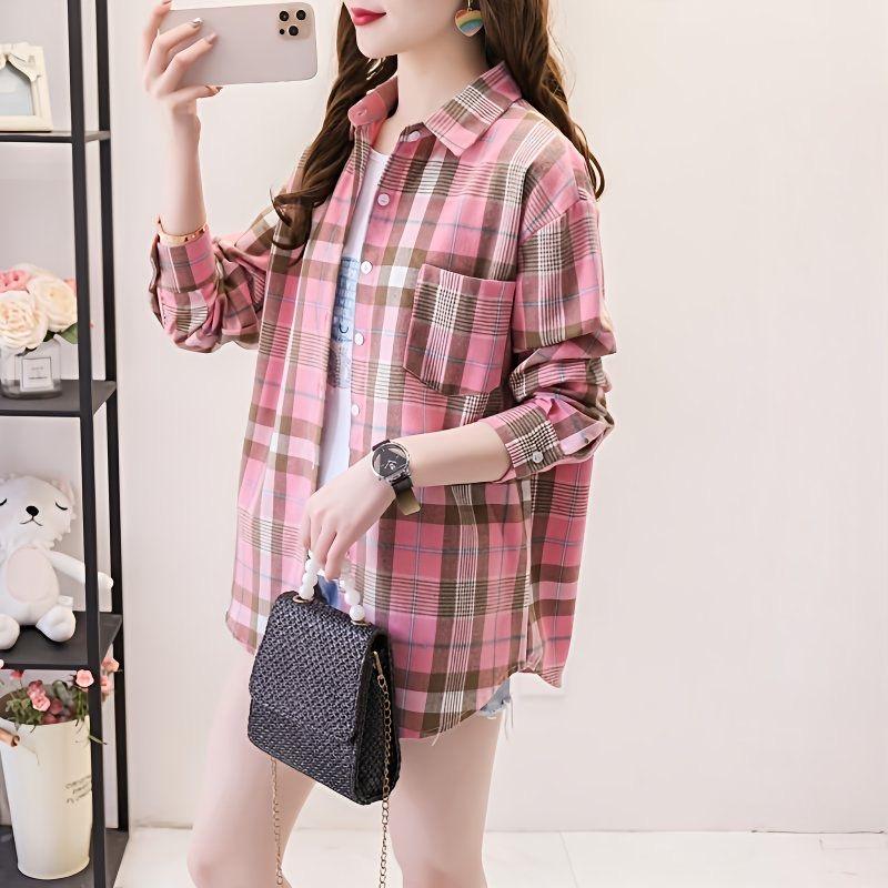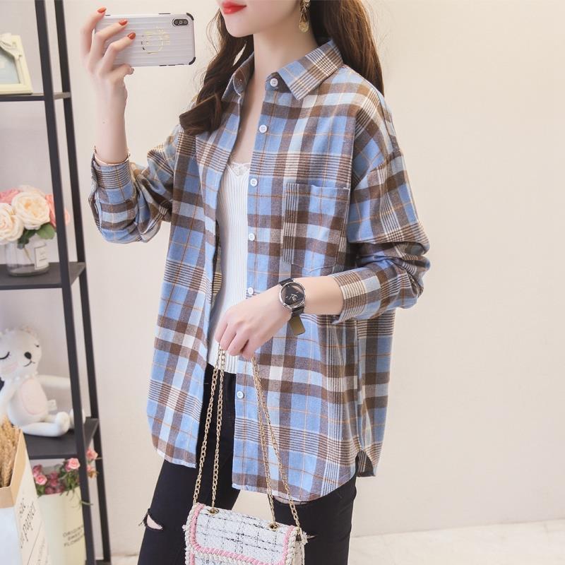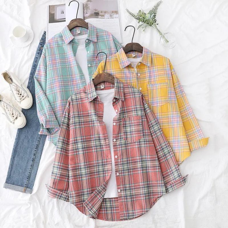 Осенние клетчатые рубашки, женские блузки и свободная клетчатая женская одежда с длинными рукавами