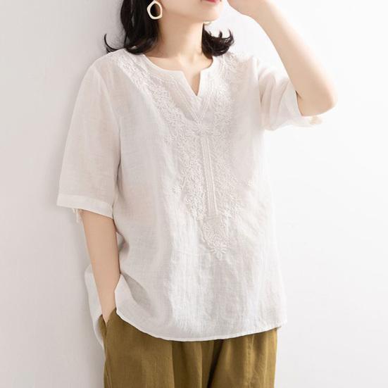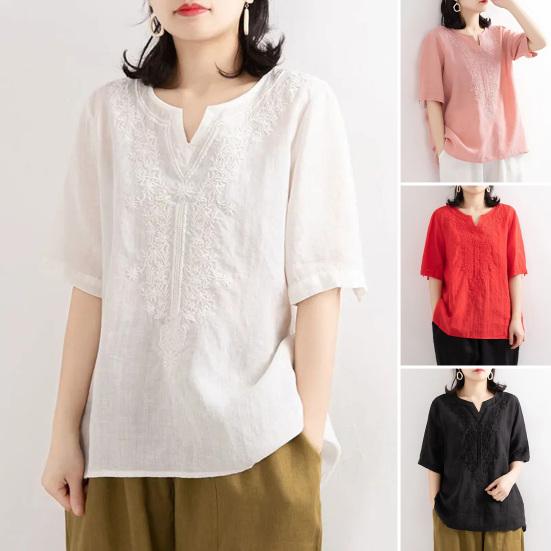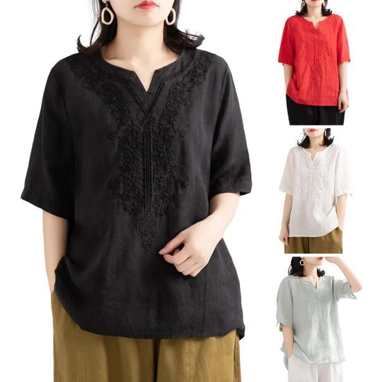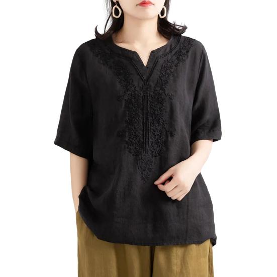 Мягкая смесь хлопка и льна: Ощутите максимальный комфорт с нашим женским топом, изготовленным из высококачественной смеси хлопка и льна.. Мягкий, эластичный и приятный для кожи материал обеспечивает повседневную носку без ущерба для стиля и комфорта.