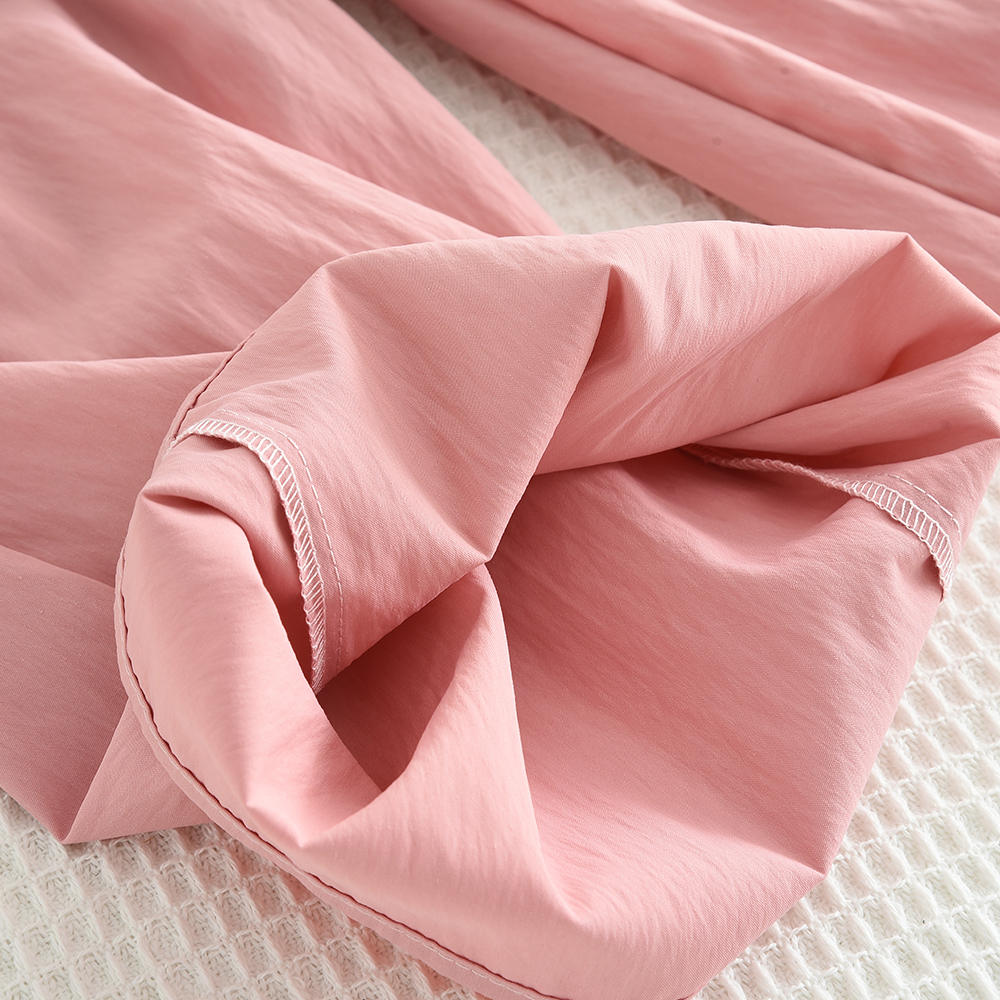 Летний свежий милый повседневный костюм для девочек Топ с короткими рукавами + однотонные брюки с широкими штанинами Набор из двух предметов