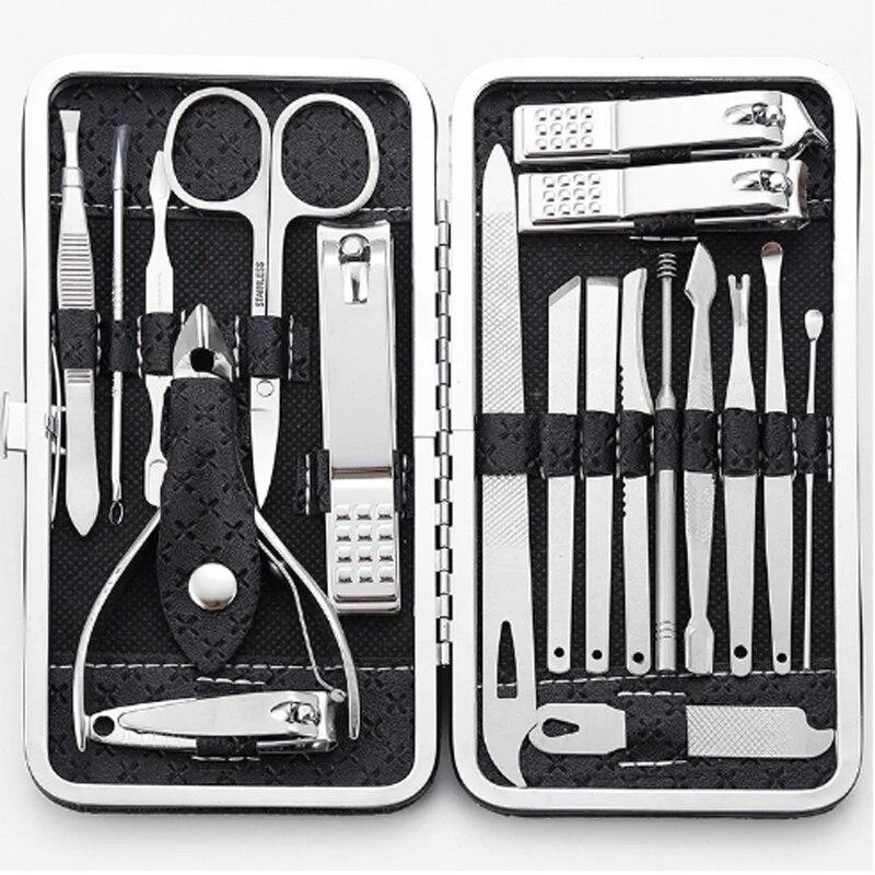 Главная Набор из 19 щипчиков для ногтей Большие щипцы для удаления омертвевшей кожи Диагональные щипчики для бровей Кожаный чехол