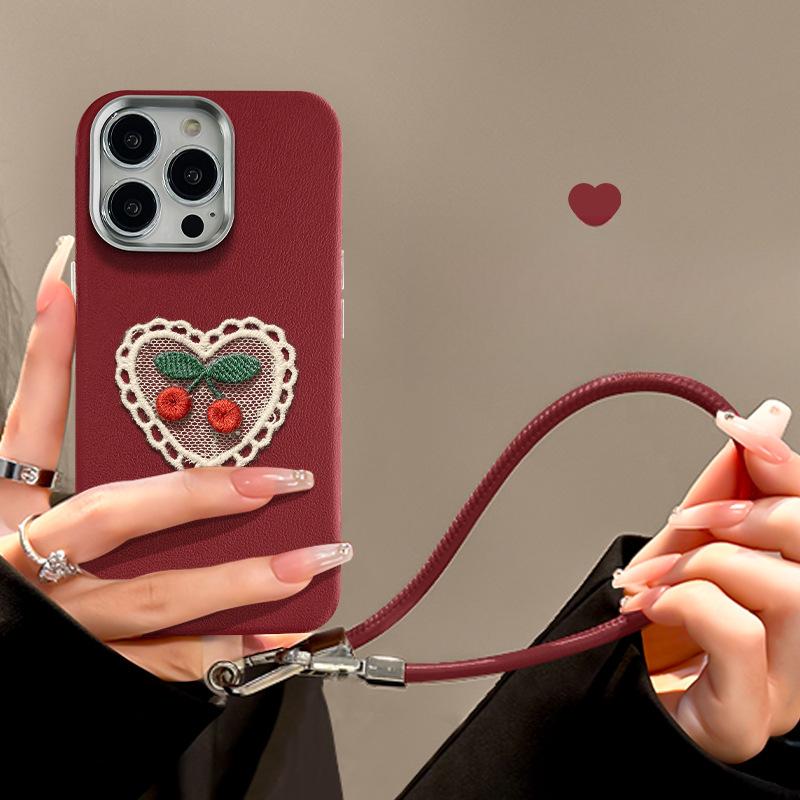 Вязаный шнурок из вишневого дерева, подходящий для мобильного телефона Apple 16PRO, чехол для iPhone15, металлический кожаный узор 14, осенне-зимний, с большим отверстием 13