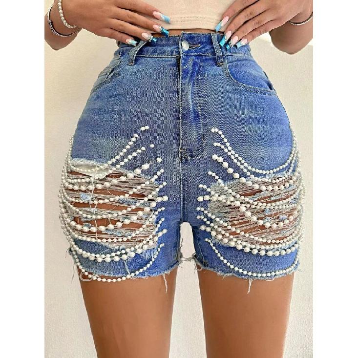 Джинсовые шорты женские летние новые с высокой талией и тонкие рваные шорты ручной работы с цепочкой из бисера для женщин — купить товар онлайн с бесплатной доставкой по всему миру!