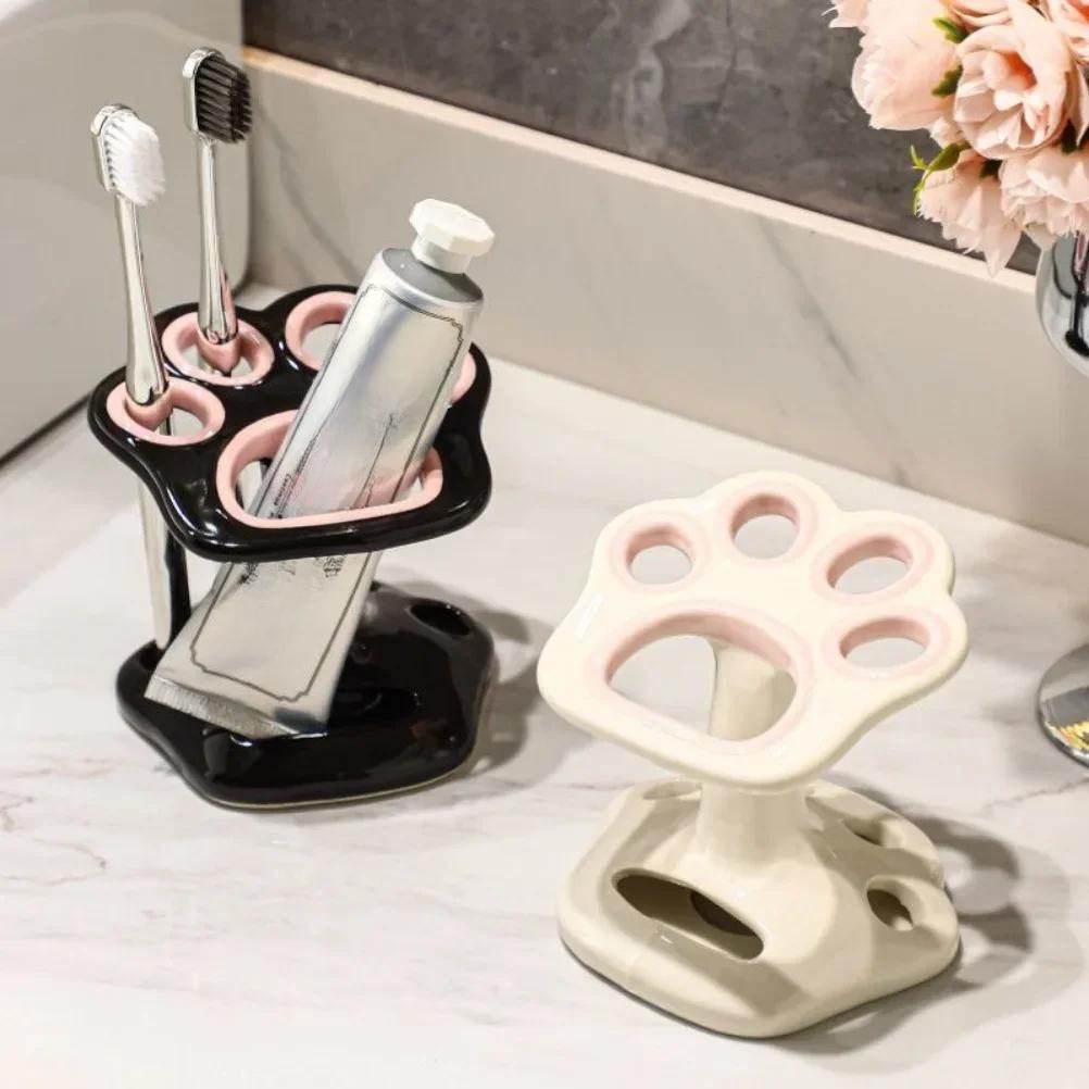Керамический держатель для зубных щеток в форме кошачьей лапки, аксессуары для ванной комнаты, инструмент для зубной пасты, подставка для хранения кистей для макияжа, украшение для дома