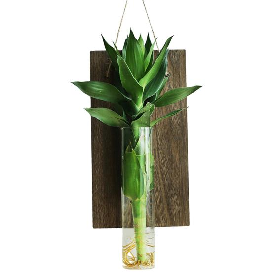 Премиум качество: Изготовленный из высокопрочного боросиликатного термостойкого стекла и прочной деревянной доски размером 33*18 см, этот цветочный горшок в равной степени отличается прочностью и стилем.