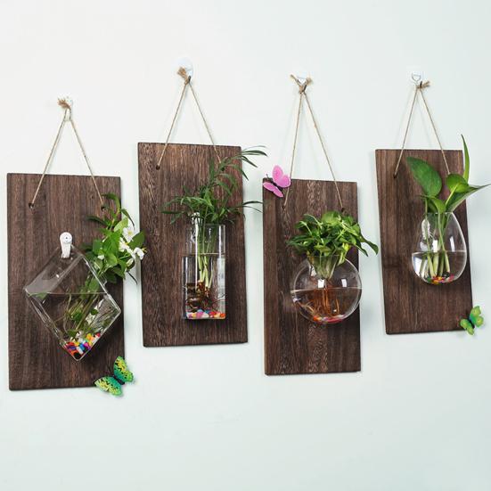 Размеры деревянной доски составляют 33*18 см, а высокопрочное боросиликатное термостойкое стекло требует аккуратной установки.. В комплект входит 1 стеклянный контейнер для растений и 1 деревянная доска. (Растения и украшения в комплект не входят.). Украсьте свой дом этим элегантным и функциональным настенным кашпо!