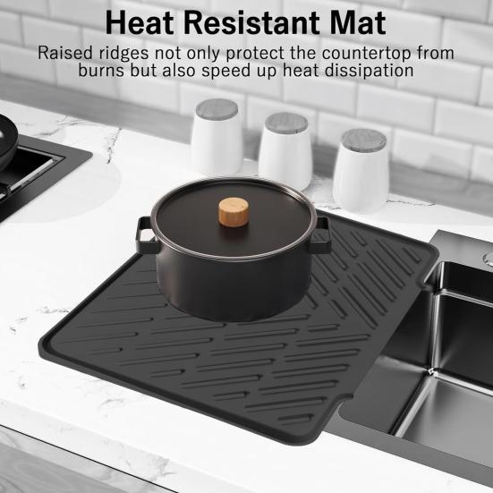 Прочная силиконовая конструкция: Изготовленный из мягкого, термо- и водостойкого силикона, этот коврик для слива гарантирует долговечность и удобство при выполнении повседневных кухонных задач.