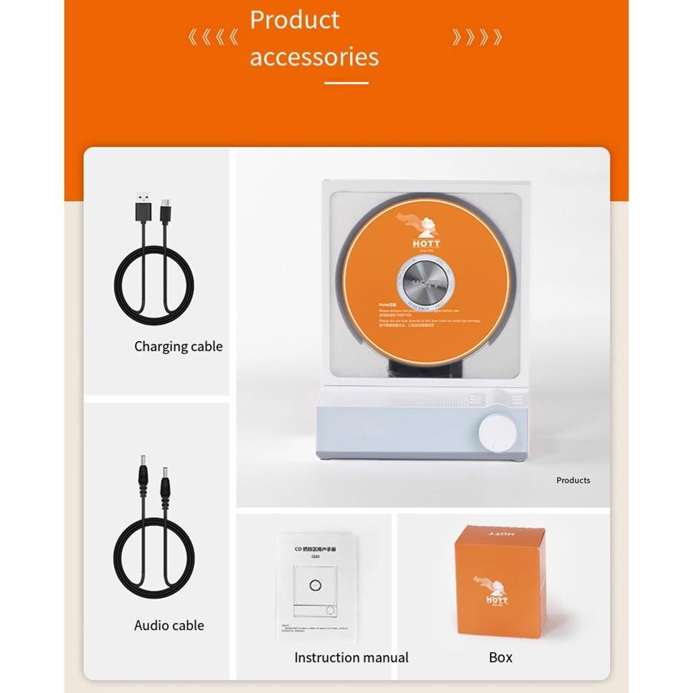 Товарная накладная: 1*CD-плеер, 1*кабель для зарядки, 1*аудиокабель, 1*руководство по эксплуатации, 1*цветная коробка