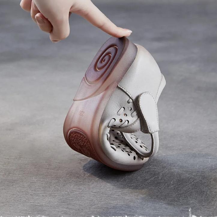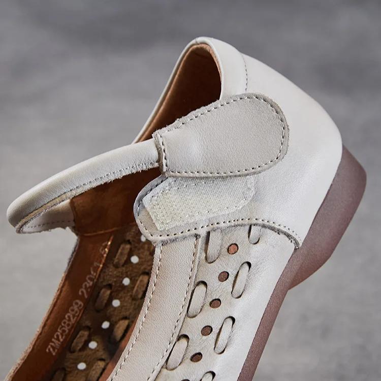 Johnature Женские туфли из натуральной кожи с мягкой подошвой, дышащие, удобные, плоские сандалии с отверстиями