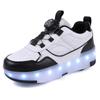Детские вращающиеся кроссовки с кнопками, быстрые четырехколесные кроссовки с колесами, спортивная обувь со светодиодной подсветкой и зарядкой через USB, спортивная обувь для девочек, роликовые коньки