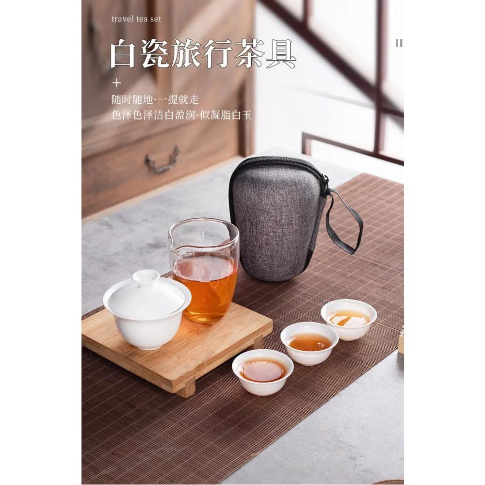 Китайский Белый Фарфоровый Чайный Набор для Кунг-Фу, Бытовой Простой Портативный Дорожный Чайный Набор для Путешествий, Керамическая Чаша с Крышкой