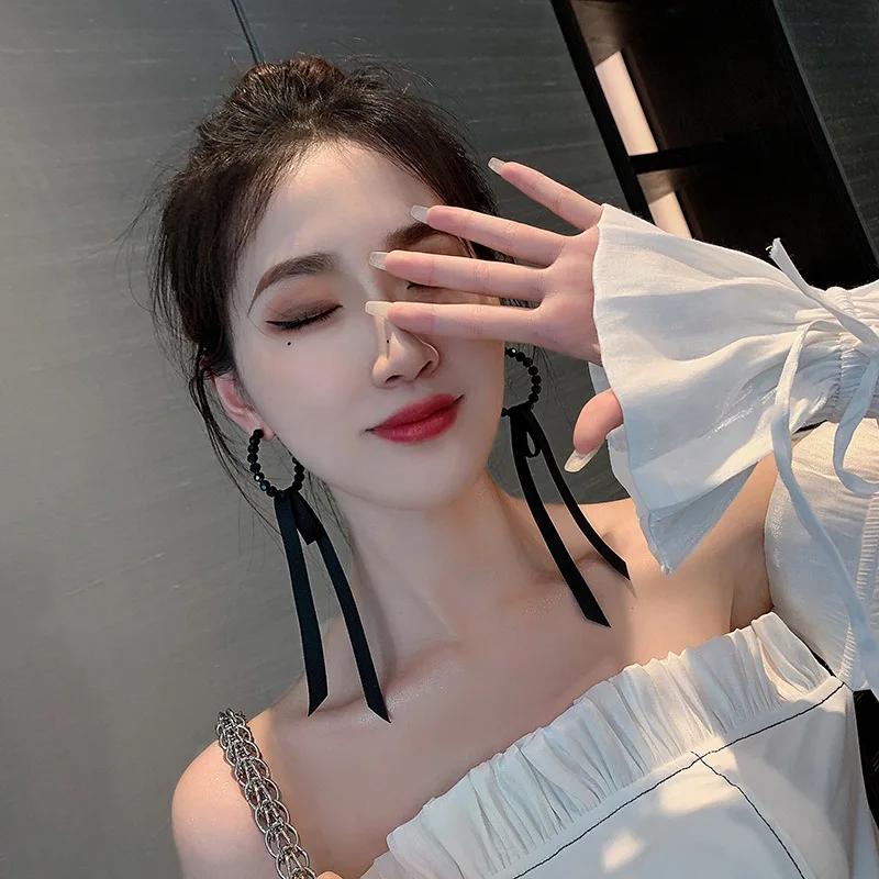 Новые серьги с черными кристаллами и темпераментом, простые длинные серьги-подвески из бисера и ленты, геометрическая круглая форма — купить товар онлайн с бесплатной доставкой по всему миру!