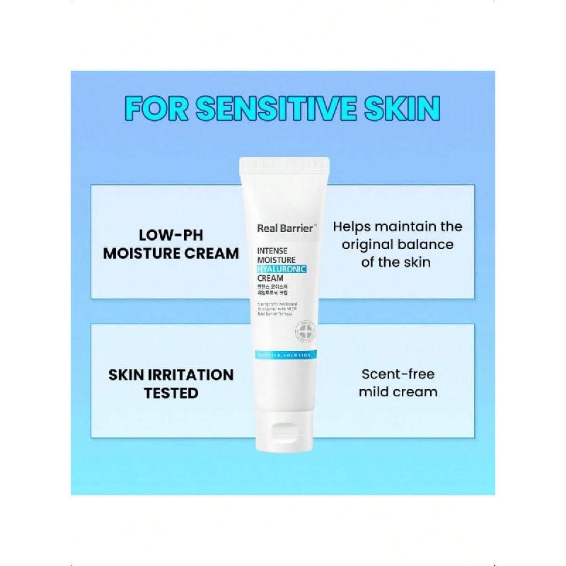 Real Barrier Интенсивный увлажняющий гиалуроновый крем 60 мл, С пантенолом и гиалуроновой кислотой, Восстанавливающий кожный барьер крем для лица, Формула глубокого увлажнения