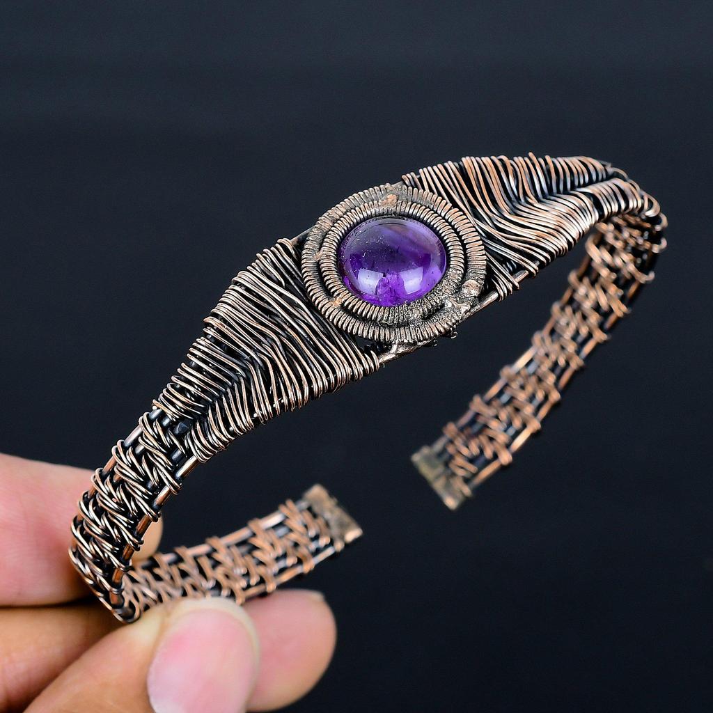 Amethyst Gemstone Jewelryt,Pure Copper Wire Wrapped Bangle , Gemstone Wire Bangle Jewelry, — купить товар онлайн с бесплатной доставкой по всему миру!