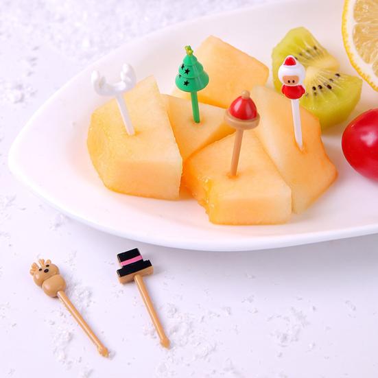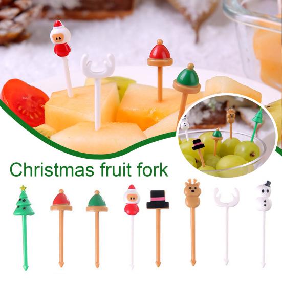Симпатичная вилка для фруктов в рождественском стиле, прочная и легко чистящаяся, идеальна для маленьких пальчиков.