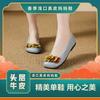 Весенние туфли с неглубоким носком в этническом стиле в стиле ретро из кожи для мам, плоская подошва, удобные цветочные одинарные туфли, мягкая подошва, женская обувь, которая не спадает